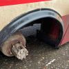 На одному з маршрутних автобусів "Еталон", що пересувався містом, люди помітили, що щось не те. Якось не так рухається автобус. І дійсно, з транспортом сталася прикрість, якщо це можна так назвати. У нього просто відвалилося одне з передніх коліс. Чому – навіть не зрозуміло. Чи то його неправильно закріпили на місці, чи то з часом все просто розкрутилося, а ніхто цього не помітив.