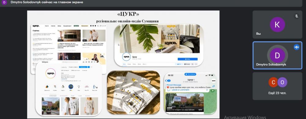 Інтерес і жваве обговорення викликали доповіді аспіранта, асистента кафедри журналістики та філології Сумського державного університету, ІФСК Олександра Горди («Цифрові медіа в агробізнесі»), аспіранта Сумського державного університету Дмитра Солодовника («Візуалізація інформації як складова нових медіа: регіональний аспект»), доцентки кафедри англійської та німецької філології ПНПУ імені В. Г. Короленка. Руслани Шрамко («Українські лінгвоконцепти в мові сучасних полтавських медіа: функційно- семантичний вимір») та ін.