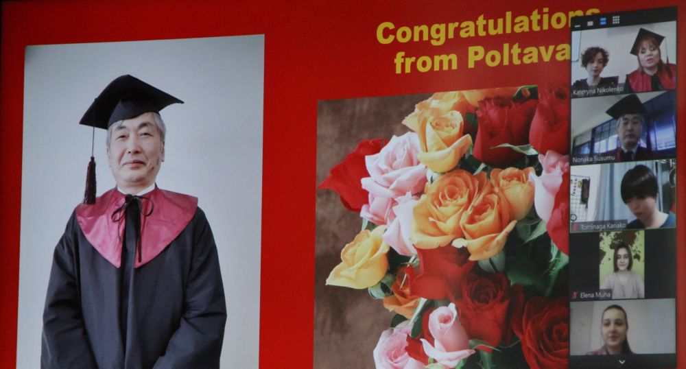 Професор Ольга Ніколенко представила значний внесок Susumu Nonaka у розвиток українсько-японських наукових відносин, зокрема в історію ПНПУ імені В. Г. Короленка. У 2012 р. Susumu Nonaka разом з іншими японськими колегами організував міжнародний семінар для українських науковців. З цього заходу розпочалася тривала дружба і співробітництво українських і японських учених. 2016 р. Susumu Nonaka реалізував важливий міжнародний проєкт «Japanin World Literature», результатом якого стало видання збірника «Japanese Literature in the World» (Saitama, 2016), в якому взяли участь і полтавські викладачі. Susumu Nonaka неодноразово брав участь у наукових конференція ПНПУ імені В. Г. Короленка: «Зарубіжні письменники і Україна» (2016), «Гоголівські читання» (2019), «Короленківські читання» (2020). Він представив змістовну доповідь на міжнародному вебінарі «Україна – Гоголь – Японія» (2019). Susumu Nonaka має багато наукових публікацій, серед них – статті, опубліковані в збірнику наукових праць ПНПУ імені В. Г. Короленка «Філологічні науки». У цьому журналі вміщено також рецензію на його монографію «Таємні стежки Андрія Платонова: поетика стилю А. Платонова» (Белград: Логос, 2019). Susumu Nonaka – директор Організаційного комітету ГО «UKRAINIAN-JAPANESE SLAVONIC SOCIETY».